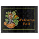 Welcome the Fall season with this whimsical watercolor illustrated woodland harvest elf / nymph perched on large pumpkins on black background with customizable orange text