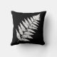 Woodland fern silhouette pattern throw pillow adapted from vintage botanical illustrations, digitally rendered and colored, in classic white and black