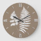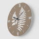 Woodland Fern Pattern, Taupe Tan and White Large Clock