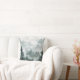 Winter themed home decor throw pillow featuring a watercolor painted circling white owl against a foggy mountain woodland forest. The back of the pillow is the same as the front.