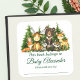 Watercolor Woodland Forest Animals with Pine Trees Baby Shower Bookplate Labels. Baby Animals include Bear, Deer, Moose, Raccoon, Bunny Rabbit, Fox and Owl with forest greenery.