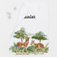 A forest, woodland landscape with deer, fox and a rabbit. Personalize and add a name. Black letters.