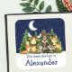 Watercolor Woodland Forest Animals and Pine Trees, Starry Sky and Moon Bookplate Labels. Baby Animals include Bear, Deer, Moose, Raccoon, Bunny Rabbit, Fox and Owl with forest greenery. Add Name.