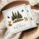 The "Woodland Forest Animals Watercolor Baby Shower Napkins" present a charming tableau perfect for a nature-themed baby shower. The design features a serene watercolor forest scene with a fox and chipmunk, adding a whimsical touch. The detailed depiction of evergreen trees set against a subtle background of butterflies adds an enchanting ambiance. These napkins not only serve a practical purpose but also enhance the decor, making them ideal for celebrating the arrival of a new life in a style that appreciates the beauty of the natural world.