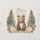 This adorable woodland forest design features a cute brown bear surrounded by blush florals and trees.