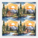 Woodland Forest Cabin Creek Sunset Mountains Wallpaper