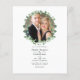 Watercolor greenery wreath photo wedding photo invitation card designed to be quickly and easily customized to your event specifics. Ideal for any given theme or garden wedding. Please note that this budget invitation is on flyer paper and it is very thin. Envelopes are not included. For thicker invitations with envelopes included and matching products on the same theme please see the collection below.