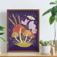 Woodland Forest Mushroom Illustration Poster Features a beautiful and trendy fungi illustration with mushrooms, flowers, and a cute butterfly in a purple pink, and orange muted color tones—a nice addition to your home decor.