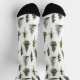 Watercolor-painted pine and spruce trees in a repeat pattern socks for men and women.