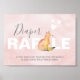 This whimsical woodland fox themed baby shower decor sign was designed using a replica of my original watercolor fox over a pale blush pink background with hearts. The words "Diaper Raffle" adorn the front. Perfect for girl baby showers in February. To see the matching cute fox themed suite and baby shower games visit www.zazzle.com/dotellabelle