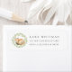 Woodland chic return address labels feature a sweet watercolor fox curled up inside a wreath of green eucalyptus foliage. Designed to coordinate with our Woodland Fox baby shower invitation collection.