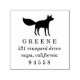 Our woodland chic return address stamp features your return address details in classic lettering topped by a fox silhouette illustration.