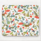 A personalized whimsical green and red woodland themed illustration designed by Shelby Allison featuring a tiny gnome character, mushrooms, flowers and foliage.