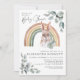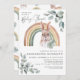 This baby shower invitation features a hand painted hare (bunny rabbit), delicate watercolor greenery and cheerful rainbows. A darling mix of rustic woodland meets modern boho. Earthy, delicate and charming these designs are perfect for baby showers, birthday parties and many more special occasions.