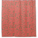 Modern shower curtain features woodland leaves pattern in taupe on salmon background