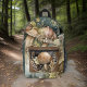 This backpack is like a walk through a deep, dense forest, with a background of mushrooms and wildflowers, and a special peek at more mushrooms through a simulated camera lens aperture. This effect gives this cottagecore fungi design a shadow box effect, for a unique and woodland look. This would be a great gift for biologist, a mycologist, or an overall fun-guy (ha!) or fun-gal. Your or your recipient's monogram initials appear in a peachy beige on the sides, so make sure to type the initials you want or delete the placeholder if you don't want initials. The sides and top are a deep woodsy green. Happy foraging!