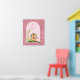 Pink velvet look background and pink arch showcases the woodland baby Hedgehog, woodland plants and branches (mushrooms, oak acorns, ladybug, pine branches).