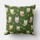 Woodland Owl Pattern, Green Throw Pillow