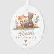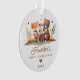 This cute baby's first Christmas ornament features woodland animals, including a fox, bunny rabbit, owl, and bear. The ornament can be easily personalized with the baby's name, date, and photo. The design is simple and whimsical, with the woodland animals arranged around a tree log. The ornament is perfect for celebrating the baby's first Christmas and will be a cherished keepsake for years to come.