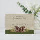 Pretty pinecone response card in dark olive green and natural burlap colors to match our Woodland Pinecones wedding invitations. These invitations are totally printed, there is no real burlap or pinecone attached.