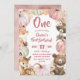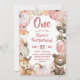 Woodland Pink Boho Pumpkin Girl 1st Birthday Invitation