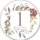 Single decorative table number sticker with our Woodland Rose, watercolor with floral leaves and berries in vivid fall or winter shades of burgundy, sage green and gray. Personalize with event date and names of the happy couple. Table number is perfect for labeling a bottle of champagne for the table to share or an empty wine bottle used as a centerpiece.