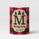 This bold little candle will add that finishing touch to your woodland Christmas or any rustic decor. It's red and black buffalo check plaid pattern is warm and trendy. Black forest tree silhouettes adorn the top of a brown crest featuring your family's monogram letter, family name in script, and established date.