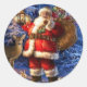 Celebrate the most wonderful time of the year and personalize your Christmas gifts during the holiday season in the most convenient way with Christmas stickers. Featuring an illustration of Woodland Santa Claus with a deer, rabbits and holding a lantern and a bag filled with presents, this beautiful Sticker is perfect for adding a custom touch to your party favors, decorating envelopes, labeling gifts or in many other ways.