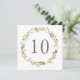 This elegant table number card in shades of blush, pink, brown and green features a wreath of natural woodland florals, berries, branches and greenery. A contemporary rustic style for a lovely modern look.