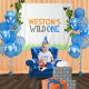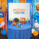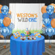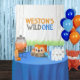 Faded Forest Wild One Woodland 1st Birthday Party Backdrop. In Blue, Orange, Brown. Part of our Wild One Birthday Collection.