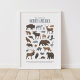 Perfect for little explorers and nature-lovers, this chart will help anyone learn to identify popular North American wildlife. Each individual animal is hand-drawn and has its own unique texture. Bring the wilderness indoors and decorate a wall in your little one's nursery, bedroom, or playroom with this educational print.
