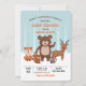 An adorable juvenile invitation featuring baby, woodland animals in a snowy forest background. (<a href='https://www.freepik.com/free-vector/pack-of-beautiful-forest-animals_1426796.htm'>Designed by Freepik</a>). <br/><br/>The card is easy to customize with your wording, font and font color.<br/><br/>Not exactly what you're looking for? All our products can be custom designed to meet your needs at no extra charge.<br/><br/>Simply contact us at askcottonlamb@gmail.com.<br/><br/>Coordinating products available: Just ask us!
