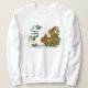 Women's basic sweatshirt with two adorable bunnies in a woodland winter scene.