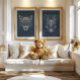 Add a bold woodland focal point to your nursery with this striking wolf illustration. The deep navy background and crisp linework feel clean and modern, while the wolf brings a cozy forest storybook vibe. Perfect for a woodland nursery theme, boys room decor, or a nature inspired playroom. A memorable baby shower gift for parents who love forest animals and rustic nursery wall art.