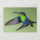 Postcard featuring a violet-crowned woodnymph hummingbird In flight in the Costa Rican cloud forest. Photo taken at Bosque de Paz Reserva Biologica, Valle del Rio Toro, Alajuela, Costa Rica.