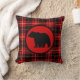 Woodsy Red Plaid Bear Print Throw Pillow