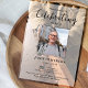 The perfect memorial invitation for your loved one's celebration of life - Especially for someone who loves woodworking. The design features a square personal photo, 6 lines of custom text and a background photo of a woodworking shop. You can easily change this out with your own photo background. Classic yet unique - this template is so easy to personalize and will make a wonderful memorial keepsake too.