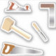 Fun sticker set of carpentry tools. Woodworking plane, mallet, chisel, wood saw and angle tool.