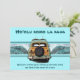 A vintage woody equipped with a pair of longboards, finds the perfect double breaking wave. The illustrated wave has a ghost image of a hibiscus pareau print. The vintage California license plate says Beachin'. This customizable invitation comes in two colorways.