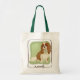 A cute bag for dog lovers with a king charles and the word woof in a frame.