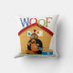 A cute dog with a ball and dish of food, a dog house, and colorful text that reads WOOF on Woof Dog T-shirts, hoodies, mugs, bags, cards, stickers, key chains, buttons, magnets, dry erase boards, electronic cases and sleeves, paper plates and napkins, and many other dog design items!