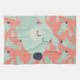 A cute, colorful, fun, whimsical design that dog lovers of every age are sure to adore whether it's kids or adults, features light blue dogs, dog bones of clay and aqua, and text that reads Woof on a coral background.