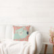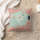 A cute, colorful, fun, whimsical design that dog lovers of every age are sure to adore whether it's kids or adults, features light blue dogs, dog bones of clay and aqua, and text that reads Woof on a coral background.