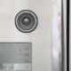 Realistic rendering of a stereo speaker (or two). Black and white graphic, on t-shirts, hoodies, cards, gifts.