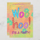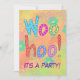 This invitation makes a fun and whimsy announcement for your party or other event or celebration. The design features WooHoo word text art on a colorful graphic art background and is completely customizable for your event. The words WooHoo are on an orange and lime green ombre background. The art design background is textured with flowers and line outline flowers and the design without the word text WooHoo is also on the other side. The words "Its a party" under the Woohoo art can be customized for your own words and event. The other side has customizable fields for your event that can be deleted if not needed or changed to make it your own style. Coordinate with other matching party supplies for a very coordinated event. Colors: Turquoise teal blue orange lime green purple. Easy to customize and personalize for a trendy and fun iPad case.