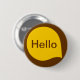 A button badge template with a stylish word bubble design with the word "Hello". However this design can also be customized with your own text, single short words or even longer texts with 3 to 4 lines by making the text smaller. You can also achieve even greater control over the text by creating a separate text object for each line the possibilities are endless. The background color can also be changed.