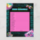 Bring some brain-teasing fun to your 90s-themed birthday party with Neon Vibes: 90s Disco Birthday Word Scramble Game. This colorful game sheet features a mix of birthday and 90s-related words, all scrambled up and ready for your guests to unscramble. Key: 1. invitation 2. confetti 3. wrapped 4. friends 5. disco 6. celebrate 7. birthday 8. surprise 9. countdown 10. champagne 11. dancing 12. drinking 13. partying 14. jukebox 15. graffiti 16. ice cream 17. cassette 18. retro 19. balloon. All the words are customizable, allowing you to replace them with your own words to make the game even more personal and fun. Pair it with our matching invitations, napkins, and coasters for a fully coordinated party. For more matching products, check out our full collection.