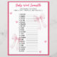Word Scramble Baby Shower Game Pink Bow Ribbon