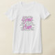 My overall review is that the T-shirt is nice, it fits true to size however the font is significantly smaller than advertised and you can't read it. The printing is unreadable and there is a strain to read it. It does not look like the advertised product. Maybe the shirt color is darker or a larger more visible font should have been used. Photos with and without flash and font is barely legible.