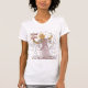 The material is a great quality that is hard to find with most tee shirts. Fabric was not see-through or thin at all, but was also very soft and comfortable. The shirt description states that it runs a little small, so I sized up one size for a perfect fit! I would definitely buy this type of tee shirt again because I love the fit and high quality fabric that I cannot find anywhere else. The printing was perfect and just as pictured. Loved the cute quote and really enjoy the tee in both the quality and design. I love quirky typography designs and funny quotes and I am extremely pleased with the overall quality and value I get at Zazzle!